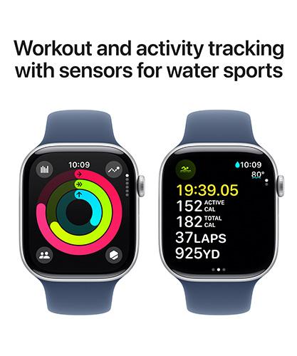 Meet Apple Watch Series 10. A bigger display with more screen area and a thinner, lighter design. Get advanced fitness and health features with Sleep Apnea Notifications,1 plus faster charging.