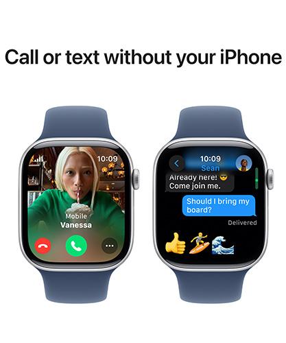 - STAY CONNECTED—Send a text, take a call, listen to music and podcasts, use Siri, and get notifications on the go. Apple Watch Series 10 (GPS) works with your iPhone or Wi-Fi to keep you connected.