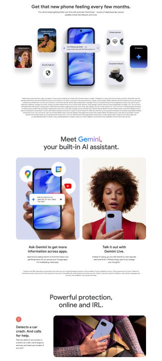 Meet Pixel 9a – engineered by Google with more than you expect, for less than you think. Like Gemini built in to supercharge your productivity and creativity. An amazing camera for incredible photos. All-day battery. Durable design. And 7 years of updates so it keeps feeling new. All for under $500.